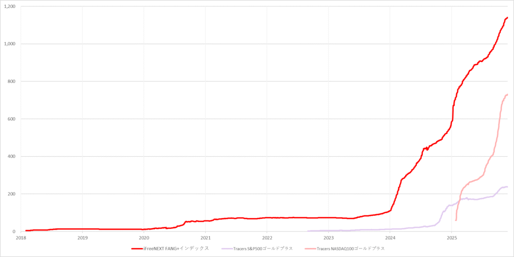 | iFreeNEXT FANG+インデックス | Tracers S&P500ゴールドプラス | Tracers NASDAQ100ゴールドプラス | |