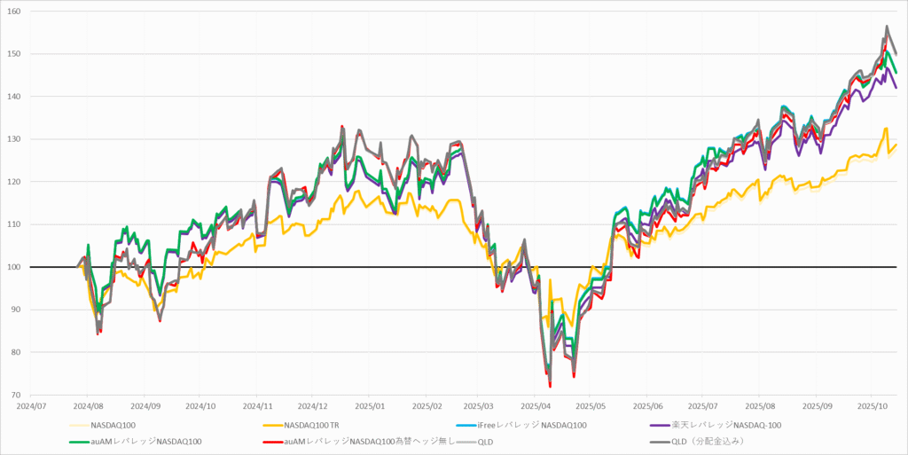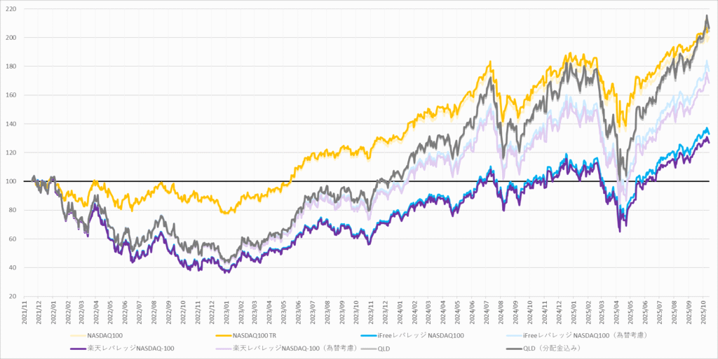 iFreeレバレッジ NASDAQ100 | 楽天レバレッジNASDAQ-100 | QLD | QLD(分配金込み) | |