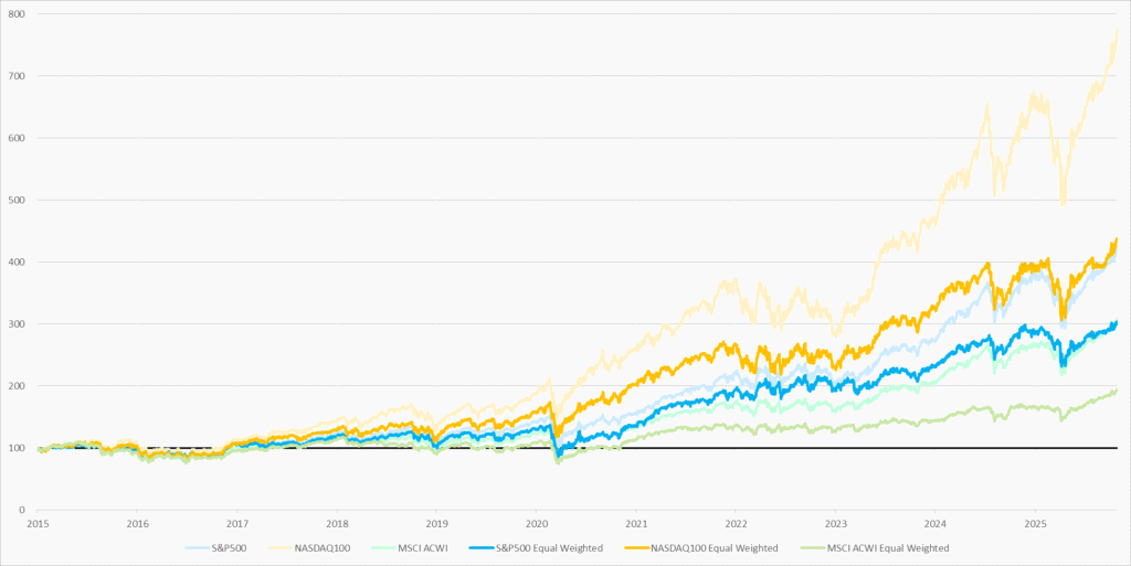 | S&P500 | NASDAQ100 | MSCI ACWI | S&P500 Equal Weighted | NASDAQ100 Equal Weighted | MSCI ACWI Equal Weighted |